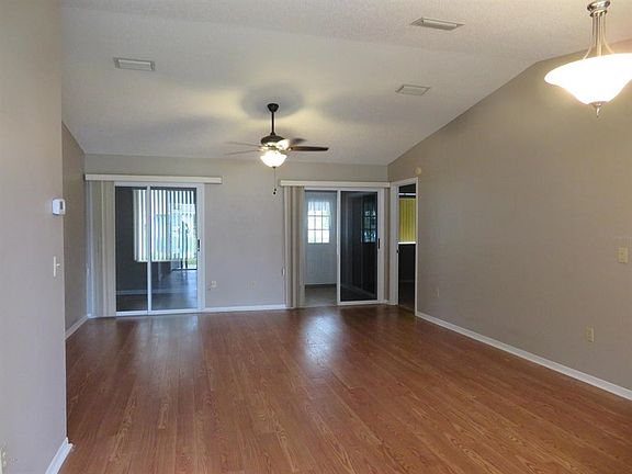 Plenty of room in all the right places! 3 bedroom, 2 bath, big 2 car garage, fenced yard, covered patio in front and back. 2 KING SIZE bedrooms with walk in closets, 3rd bedroom queen size with double closet. Kitchen has huge pantry and ample counter and cabinet space. Open living room and dining room with vaulted ceilings. Lanai is enclosed with sliders to living room, guest room and master bedroom.