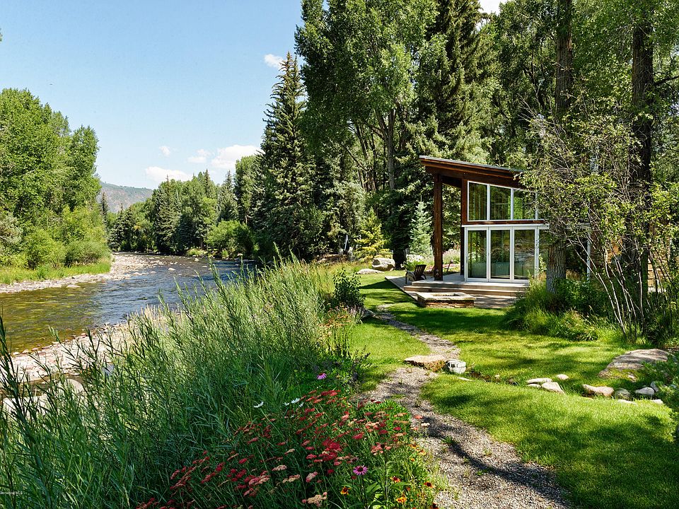 AVAILABLE FOR THE SCHOOL TERM: A unique river front property on 2.7 pristine acres in Woody Creek. 3 Bedroom + office / 2 bath single family home with exceptional, fishable, river frontage. Exceptional landscaped gardens with multiple water features and ''secret'' children's garden. Updated/remodeled kitchen and furnishings, fresh paint. Built in 1984. Features include large outdoor living space off the main living level, deck off the master, side yard with play set, wood laminate floors, granite tile counter tops. washer/dryer. Approx 1685 square feet. On the seasonal shuttle bus route. As an added bonus there is an enviable contemporary fishing cabin with walls of windows mere feet from the river (murphy bed and full bath).Bedding: King, Queen, Queen, 2 twins