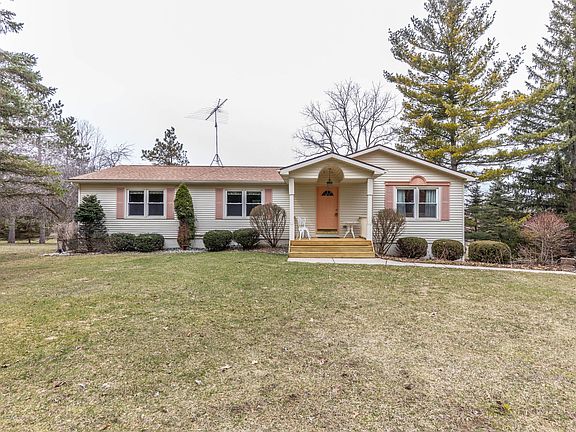 Beautiful one-owner custom-built home by Fedewa.As you enter the front door you can see the natural light flooding in from the kitchen and living room areas where floor-to-ceiling windows look out over a large stocked pond and the surrounding 5.7 acres of private property. The Kitchen features hickory cabinets, a large island, and under-cabinet lighting with access to the backyard deck. This is all open to the dining and living room areas. The main living room features beautifully maintained hardwood floors. There are 3 nice-sized bedrooms with large closets and a master suite with a private deck overlooking the back yard. This home offers multiple living rooms and an eat-in dining space in addition to a formal dining room.The lower level is perfect for another living area/ Rec room or home office with walk-out access and a lot of storage throughout.Included is a 24 X 32 pole barn with concrete floors, a floor drain, and 110 electric.