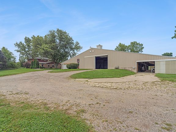Home is in a private setting with 3 bedrooms, 8 rooms, 3 ½ baths, and 102x120 pole building that contains a 4,000 sq ft heated shop with radiant heat, 23 concrete horse stalls w/loft and water supply, additional storage and parking south side. This property also has a 12x24 Sauna/tiki hut with a wood burning stove, changing room, deck and fire pit.