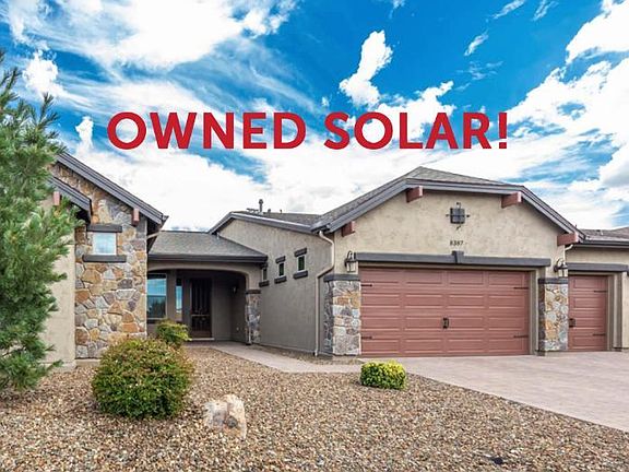 *NEW REDUCED PRICE*Spacious energy-efficient Mandalay Home on .24 ACRES with OWNED ''grandfathered'' Solar system which allows for higher credits ($17-$23/month typical electric billing, if not credit carryforward). Highly sought after ''Manzanita'' floor plan with 3 over-sized bedrooms and 2.5 baths, PLUS large bonus room. Formal dining is a ''flex room'' with glass doors, that can be used as a den/study or secondary family, TV room. Breakfast Bay Window, GRANITE Counter Tops, large island, spacious PANTRY, and CUSTOM Cabinets. Cathedral Ceilings. Driveway PAVERS with a 3-CAR Garage, and Workshop. Large private backyard with covered PATIO overlooking firepit and seating. Low water ''xeriscaped'' front and back landscaping. 6-person SPA. ON-DEMAND TANKLESS Hot Water Heater, Whole-House