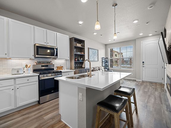 This spacious 1,249 sq. ft. fully furnished townhome combines modern style with everyday comfort. With large windows and an open-concept layout, natural light fills the space, creating a bright and inviting atmosphere. The sleek kitchen features stainless steel appliances, ample cabinet space, and a spacious island, making meal prep and entertaining effortless. The primary and secondary bedrooms each offer custom walk-in closets, providing plenty of storage. Relax in the cozy living room, complete with a fireplace and a large HD flat-screen TV, perfect for unwinding after a long day. The home is fully equipped with a smart home system and a security system, offering convenience and peace of mind.