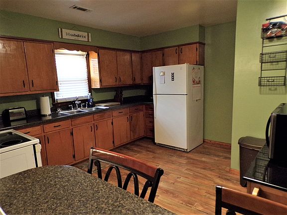 Beautiful Brick Home with loads of personality. New Replacement windows. New Roof Shingles, Paint, Flooring and carpet. Huge laundry room with shiny metal ceiling. Large detached garage with added lean-to attached. Garage is wired and also has 240 plug for any needs. Can easily add a generator if need be. Plenty of outdoor entertaining space with your covered back porch and a wonderful covered patio in the backyard. 4th Bedroom is currently being used as a den but does have a closed. This room also has a gas line installed for extra heating source. Home is just outside the city limits so no city property taxes. This is such a nice home you simple must see!!! Call Chuck for more info and showings. Combo lock