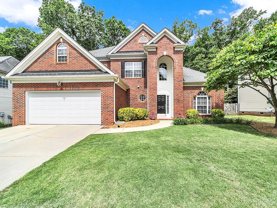 Beautiful, full-brick home in the desirable Poplar Woods community in Concord. This original owner home features an open layout, fresh paint, new LVP flooring and carpeting, updated lighting, faucets and door hardware. Kitchen offers plentiful storage, slate tile floor and backsplash, travertine countertops, pantry, adjacent breakfast area and family room with gas fireplace. Spacious primary on the main with sitting area and ensuite that includes vanity with dual sinks, separate shower, soaking tub and walk-in closet. Upper level has three additional bedrooms, a bonus room and full bathroom. Fully fenced, flat backyard with patio. Two-car attached garage with new door. Upstairs heat/air replaced in 2022. Community pool and splash pool. Convenient to I-85, I-485, Charlotte Motor Speedway, Concord Mills, Concord Airport and Uptown Charlotte. Currently zoned for Cox Mill High School. County taxes only. Refrigerator and stove are less than 5 years old. Refrigerator/Kamado Joe grill convey.