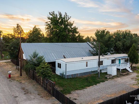 Opportunities galore! This Mixed Use lot, in growing Gem County, sits on almost 1/2 acre. The original, history-filled polebarn built in 1940 (2660 sq ft) was updated in 2006 and has two extended car bays w/ exterior garage doors, concrete floors, office space, electric, insulated, a wood stove, and sewer has been plumbed to the building. It's full of character and charm. Out back you will find a covered area (608 sq ft) & an additional room. The lot is an open slate; use it for storage, gardening, animals, etc...The single wide home is being sold As Is. It needs some TLC but can be used as either a residence or an office! The artesian well supplies all water to the property. This property should appeal to homeowners, businesses, & investors! It provides great privacy in a very peaceful setting! So much potential!