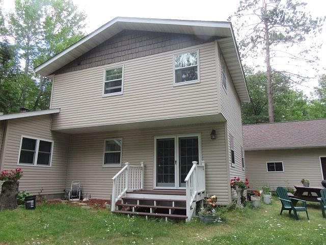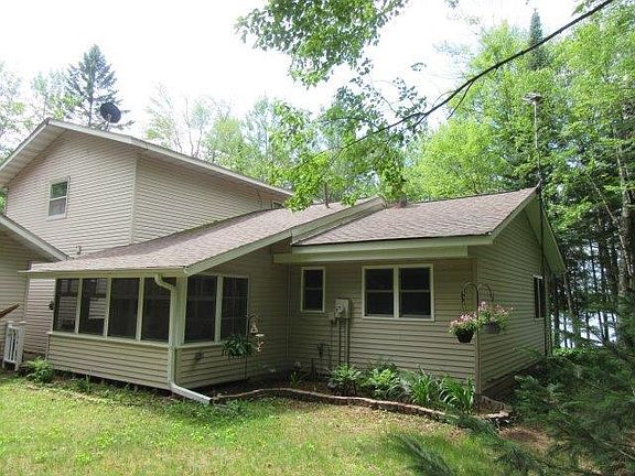 You wanted it all and here it is.Full rec lake, clear water, sand frontage, and good fishing.The bonus is the three bedroom three full bath home. You enter the home thru a 3 season porch which leads you into the kitchen.Cabinets are elderwood with pull out shelving as is the pantry and corian countertops. Off the kitchen is another full bath and den/office area.Living room and sitting room also face the lake.Dining room in the center of the home and has lakeviews as well. On the second level you will find two good sized bedrooms both with walk in closets and another full bath.Master suite is on the main floor with a large walk in closet with built ins and ample sized master bath.French doors lead to a porch which is lakeside where you will find a level yard and fire pit.Outside there's a 40 X 24 garage as well as a 24 X 24 garage, wood shed with space to store your lawnmower and snowblower. Raised garden area and black-top drive that extends about 30' from garage. Don't miss this!