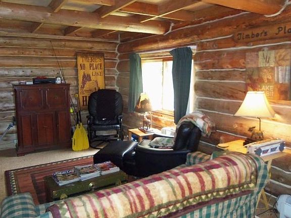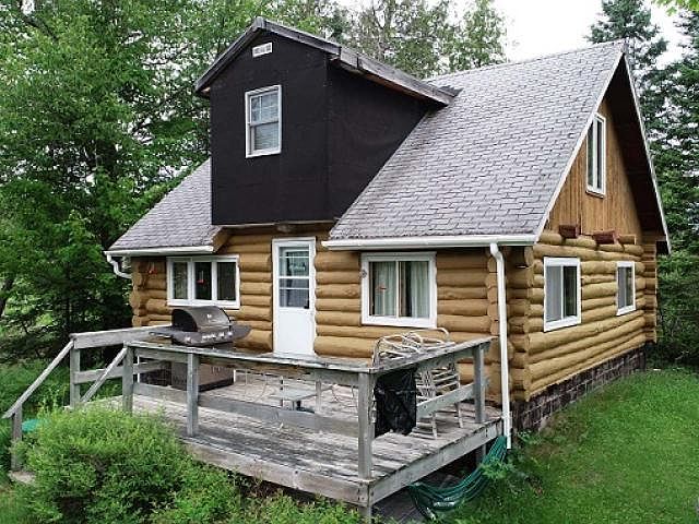Long Lake - 8389N North End Road, Oma - Enjoy the best of all worlds with plenty of room with this 3 bedroom, 2 bath Full Log Cabin! Fishing, hunting, ATVing, biking, walking or just sitting and enjoying nature at its best on Long Lake! This full log cabin was built from the trees on this 8 acre parcel and features an open living & dining area with full log beams, vent less gas log stove, and a breathtaking lake view. A kitchen with stove, refrigerator & lots of cabinets, bedroom, full bathroom and storage room. The upper level has 2 bedrooms and nice full bath. Outside is a lakeside open deck to sit and enjoy the awesome view of Long Lake, a pump house with the well pump and pressure tank, 350 feet of fisherman shoreline on Long Lake and 8 acres of land. Comes completely furnished including all furniture, beds, pot & pans, sheets & towels. Just bring the groceries and your gear!