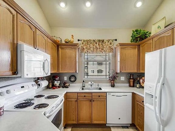 Quiet end unit facing greenbelt . Private entrance, beautifully maintained property. New carpet, new paint, new blinds, open floor plan, 5 piece master bath, walk-in closet with built-ins, linen closet in master, Ceiling fans, Washer and dryer in the unit. Enjoy your afternoon cocktail on your deck with mountain views. Plenty of parking, pool, hot tub and gym. 1 car garage is close to unit. Owner pays for HOA which includes water, pool, hot tub and work out facilities.