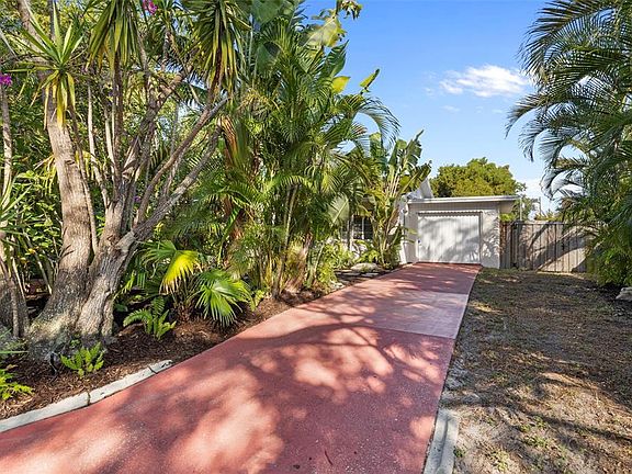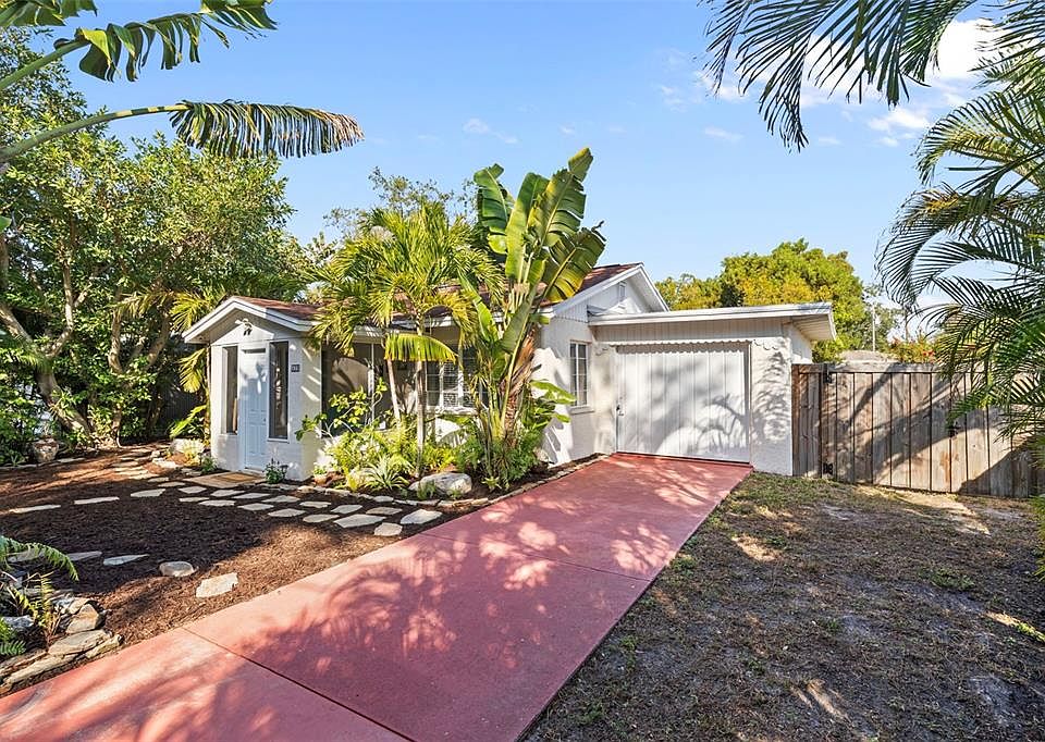 Welcome to 839 40th Street, located west of the trail in Sarasota's desirable Indian Beach Sapphire Shores/Museum District. This charming home is just steps away from a picturesque neighborhood beach along Sarasota Bay, renowned for its breathtaking sunsets. The neighborhood also features three water access points, a lovely park, a playground, and a dog park, ensuring there is something for everyone to enjoy. Tucked behind a lush, manicured garden filled with native Florida-friendly plants, you'll discover a peaceful secret garden oasis that invites you to unwind. This delightful two- bedroom, one-bathroom home features a second bedroom with its own separate entrance, providing endless possibilities for utilizing the space. The home beautifully blends historic charm, such as arched doorways and a built-in dresser, with modern upgrades, including stunning river rock granite countertops, travertine tile floors, and an efficient Rinnai instant gas water heater. The thoughtfully designed kitchen offers ample counter space, making it ideal for entertaining, while abundant natural light creates a warm and inviting atmosphere. Each window is adorned with tasteful, matching wooden blinds, adding a cozy and polished feel throughout. For those who enjoy outdoor living, this home delivers with two screened-in porches and two open patios surrounded by tropical beauty (including a mature, fruiting grapefruit tree), providing a serene and private escape. Picture starting your day enjoying a cup of coffee on the back porch and winding down your evening with a glass of wine in the front garden, observing the vibrant butterflies and Florida birds, including the occasional visits from friendly neighborhood peacocks strolling by with their young. Additionally, the fully fenced backyard, complete with a 10-foot gate, makes storing a boat or RV effortless. This home boasts a proven Airbnb history, having achieved Super Host status, a Customer Favorite badge, and a perfect 5-star rating over its nine successful years. It’s conveniently located just minutes from Jungle Gardens, SRQ Airport, the Ringling Museum, Asolo Repertory Theatre, the Van Wezel Performing Arts Center, the Ringling College of Art and Design, the University of South Florida Sarasota campus, New College of Florida, and Sarasota’s vibrant downtown and award-winning beaches. Plus, it’s within walking distance of Bay Haven School of Basics Plus, one of the top elementary schools in Sarasota. This well-maintained, move-in-ready home is a rare find, offering an exceptional combination of charm, privacy, and a fantastic lifestyle in an idyllic setting full of Old Florida charm. With sturdy all-block construction and a history free from water intrusion or hurricane damage, you can enjoy peace of mind and lasting security. (This home is not in a hurricane flood zone.) If you’re searching for a quintessential Florida home located in a historical neighborhood on Sarasota Bay, surrounded by friendly neighbors and close to all that Sarasota has to offer, your search ends here. Don’t let this opportunity slip away. Schedule a showing today!