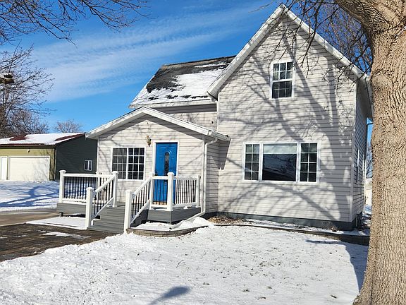 Charming 3 bedroom home new to the market! Located along a quiet street that is walkable to the public school, ball fields and 2 large city parks. You will appreciate the many updates (inside and out). Newer vinyl siding and newer vinyl windows and you will be greeted by a composite front deck that was just constructed in 2023. Inside, you'll find a large living room with 4'4 x 8'6 bump out, ideal for an office area or reading nook, an open concept kitchen and dining area and an updated main floor bath, complete with a deep tub and dual shower heads. Beautiful woodwork and solid interior wood doors throughout. This home is quite efficient too, so be sure to ask for the utility budget information. Looking for a sweet garage? You're in luck! This one has a detached (28x30') that was constructed in 2003. It's insulated, finished, has a floor drain and a propane heater. Lots to like, so give us a call today for your private showing.