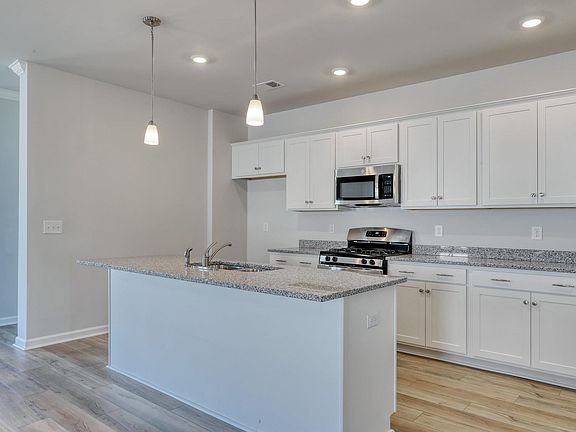 QUICK MOVE-IN OPPORTUNITY! Welcome home to the Gwinnett located on a stunning center pond homesite! Upon entry, a generous foyer leads to two identical sized bedrooms that share a full bath. The kitchen offers upgraded white cabinetry, quartz countertops, a walk-in pantry, and a large center island that overlooks the great room with a tray ceiling and the eat-in area. The primary suite is located at the back of the home and features a tray ceiling and spacious walk-in closet. The en-suite bath includes double sinks with quartz countertops, a five-foot shower with a glass enclosure, and a private water closet. Luxury vinyl plank flooring extends throughout the main living areas and into the primary bedroom. A fourth bedroom is tucked away off of the garage entry and would make a perfect office or bonus room. Additional options include crown molding in the main living areas and primary bedroom, and a gas fireplace in the living room. Don't forget the rear covered porch and patio gas-line, perfect for entertaining! Irrigation, full house gutters, garage door opener, and architectural shingles are included! Live a laid-back lifestyle in your new home at Merrill Villas!