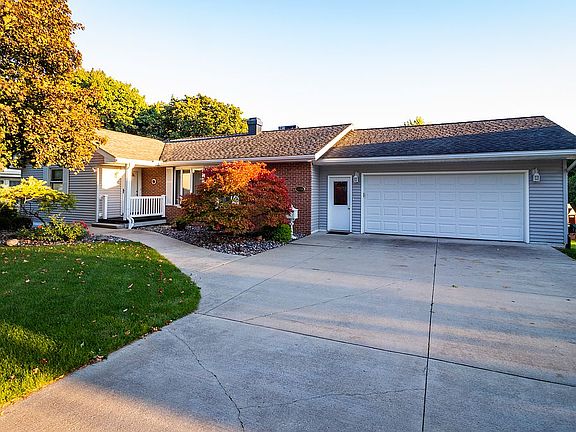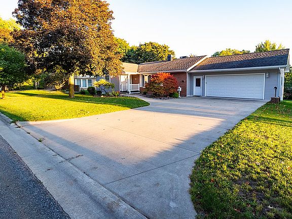 Well maintained, three-bedroom home in a quiet neighborhood. Easy walk to schools and hospital. Marble framed gas fireplace in living room across from bay window. Custom, built-in cabinetry in living room with book shelves and TV nook above. Ceramic tile throughout kitchen and main floor laundry room. Large closets in all bedrooms and bathrooms with extra storage in two hallway closets. Main bathroom updated in 2021 with walk-in shower. 7.25 feet of Corian countertop over custom cabinetry completes the full bathroom. Dry, finished basement with half bathroom added just last year. Central air-conditioning and whole house fan keep it cool in summer while clean, even baseboard heat keeps it cozy warm in winter. Spacious garage with plenty of cabinets for storage and walls finished and painted. Large deck is shaded with a retractable awning and includes privacy fence. Carpeted screened-in porch is accessible from the deck as well as the dining room. Perfect for quiet, comfortable living in a friendly community. Photo Credit: Wagner Media Productions