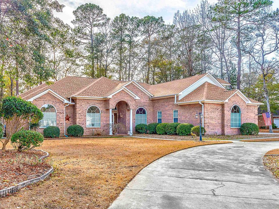Stunning 5 BR/ 3 BA/ 2 car garage all-Brick executive home nestled on +/- .59 acre lovely landscaped direct golf course lot. Home exudes elegance with attractive curb appeal including a circular drive, concrete walks, and a drive extended for side-load garage. Walk into this beauty and be greeted by beautiful, warm hardwood floors in foyer, family room, living room, and hallways. All rooms are bright and light with volume ceilings which expand and enhance the rooms. Home provides an open - airy split bedroom plan. The living room is quite large and opens to a formal dining room, breakfast area, kitchen, and family room with fireplace. Kitchen is beautiful and has granite counter tops, under mount sink, custom cabinets, pantry, breakfast bar, breakfast area (with bay window), all stainless-steel appliances including double - ovens. Kitchen opens to a family room with fireplace and door leading to a lovely, tiled patio – all overlooking the 7th Tee (Par 5 hole) on the Jack Nicklaus Golf Course. Home boasts two large other bedrooms with full Jack & Jill bath with double sinks, linen closet & tub shower. Fourth bedroom on main level can also serve as an office and upstairs there is a huge bonus room ( or 5th bedroom) with large closet. This home is full of architectural design: arches, columns, chair rails and custom dental moldings- just beautiful throughout. Home has a large laundry room with plenty of upper and lower cabinets for storage and opens to an extended garage- which will be great for unloading groceries, etc. Enjoy the awesome large, tiled patio overlooking spectacular golf course views which can be accessed from French doors in the master suite, French doors in family room and door from guest bathroom. If you’re outside grilling or entertaining this makes access very easy for you and your guests. Home Lacks Nothing and for your convenience comes with a Kohler Whole House generator and Hurricane Shutters. See this home and it will speak "WOW" to you!