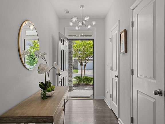 Move-in ready townhome in highly desirable Amberly community in West Cary! This upgraded home features a gourmet kitchen with gas cooktop, quartz countertops, wall oven, and white shaker cabinets. Engineered hardwood flooring throughout the main level, upgraded fixtures, plus a screened-in porch perfect for relaxing. The spacious second floor includes a tray-ceiling in the primary suite with walk-in shower, soaking tub, private toilet room, dual vanities, and large walk-in closet. Two additional bedrooms and a laundry room complete the level. The rare finished third floor with full bath offers flexibility for a guest suite, office, or bonus room. Enjoy resort-style community amenities: pool, clubhouse, fitness center, walking trails & playgrounds. Convenient to RTP, major highways, shopping, and wake county schools.