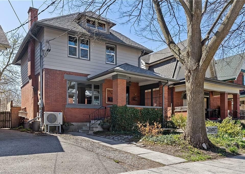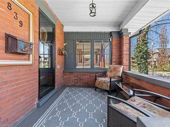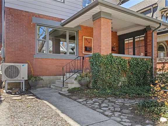 839 Dufferin is welcoming with great curb appeal and a large porch, sitting on a deep Lot this red brick century home is well maintained and feature rich. Inside is a blend of vintage and modern - the foyer is reengineered but maintains the original light switches, light fixture and high ceilings to complement newer electrical and hardwood flooring. Main floor has French doors, separate dining and living areas, an updated pendulum style kitchen with Quartzite countertops, SS appliances, soft close cabinetry and extra large European swing doors that exit onto a deck that makes for a great summer focus point or quiet spot with a view. The 2nd floor bedrooms have large closets and two views into the backyard including one from a unique 4 piece washroom with laundry and clever clothesline. The primary is staged with a king and comes with it's own nursery/office and powder room with heated stone flooring. Heated flooring in the finished basement as well which comes with a murphy bed and 3 piece bath. The gracious 7x7 doors, swing gate and garage each lead to a different area of the tiered backyard which comes with a large deck, awning and great view with the neighbourhood's pride of ownership on full display. Pool sized backyard, freshly painted and move in ready. Updates include siding (2018), furnace(2022), shingles(2019), plumbing, electrical including upgrade to 200amp service, kitchen (2016), hardwood floors and stairs (2016), most windows, spray foam insulation.