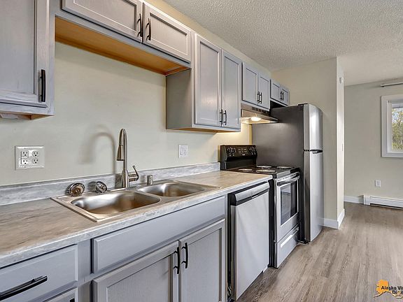 Downtown living without downtown price! Close proximity to both Downtown and JBER Military Base. Be the first resident to enjoy this newly renovated unit! Oversized one bedroom one bathroom unit with all utilities included! Entire building recently renovated featuring: -Stainless Steel appliances, including full size dishwasher -LVP flooring throughout to make cleaning a breeze -Large eat-in peninsula -Multiple large storage closets throughout unit to store your Alaskan outdoor equipment -Large windows allowing for natural light -Laundry on-site -Off street assigned parking for one vehicle -Electronic access to building with security system -Online rent payment and maintenance requests One year lease required. Security deposit $1000. $25 background check fee if interested in leasing. Pets allowed with approval, breed and weight restrictions apply. 35$ pet rent for dog, $25 pet rent for cat and one time 250$ pet fee applicable, call or email for more details. Two adults maximum. Income must be 2.5x rent. (Unemployment does not qualify as income) No Alaska Housing. Non-smoking building.