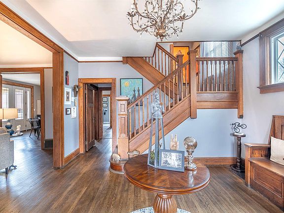 Phenomenal is the only word to describe this meticulously restored and updated home located on a generous double lot with views of Bayard Park! The moment you enter this well preserved Craftsman 2 story, you will fall in love with the extensive detail! The foyer is dressed to impress with extraordinary original details including built-in bench seating, restored hardwood floors (that flow throughout the home), and stunning switchback staircase that leads from the grand entry, as well as secondary access that is convenient to the kitchen. Sight lines are extremely important in modern living, and subtle modifications have been made to blend the main living spaces seamlessly. The living room is accessible from the foyer via a large opening. It features an original tiled fireplace that has been updated w/ a gas log. Massive original pocket doors lead to the formal dining room. It features a custom wet bar w/ built in wine refrigerator, 8 foot patio doors that lead to the covered side patio w/ views of Bayard Park, and is open to the gourmet kitchen! The kitchen is a show stopper! It features custom solid wood shaker style cabinetry w/ soft close features and dove tailed drawers. It is accentuated by a beautifully coordinating navy island, gorgeous silver cloud granite counters, original built-in China cabinet painted to match the island, and chef inspired Kitchen Aid stainless steel appliances including 5 door refrigerator and gas range! In addition on the main level is a beautifully remodeled half bath for guests with ship lap detail and hex tile flooring. Exiting through the patio doors from the dining room you will find the 16X16 covered patio w/ lights, fan, and bluetooth speakers that overlooks the large privacy fenced yard. Leading from the kitchen, you will find the deck and a two car detached garage w/ opener. The second story affords the 4 bedrooms. The master bedroom is very generous in size, and features extensive shiplap work which makes a prominent statement. The additional bedrooms are are all spacious in size including one with an adjoining lounge/hobby room that would be perfect for the family member needing a bit more personal space! The full bath on this level is well appointed with a custom vanity, linen closet, and tiled rain shower w/ sliding door. Mechanical improvements include 200 amp electric, Dual HVAC in 2019, triple pane windows 2019, and water heater 2019!