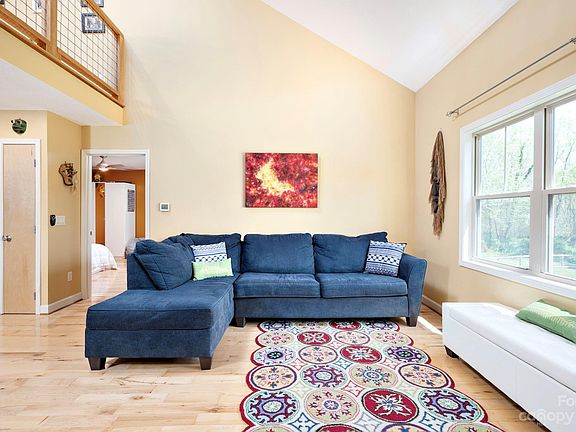 **Multiple Offers Received: All Offers Due by 5/23 5pm**A little slice of paradise tucked away in the heart of Asheville, this 2015 modern custom home has tons of unique and special features, and its private, sunny, fully fenced 1.74 acre is ready for gardening, playtime, and entertaining. The light-filled open floor plan includes two bedrooms with ensuite baths, plus spiral stairs to the central loft, which can serve as a third bedroom or as a second living area. Custom cabinets and quartz countertops feature in the efficient kitchen. Large, double-bay detached garage with electrical/ plumbing and a separate storage unit makes for an ample repository for cars and toys. Room for future studio or expansion. Enjoy the outdoors with front and back decks, a fire pit, and your very own lap swim spa. Peaceful living, only three miles from downtown, vibrant West Asheville, and the River Arts District. Easy-to-use loop driveway, plus tons of parking with two separate entrances from Emma Road.