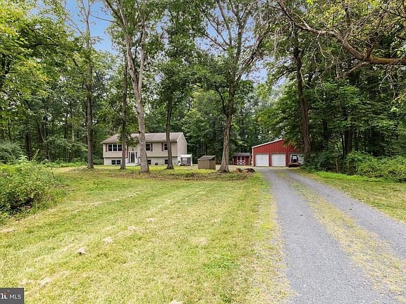 Welcome to this split -Level single family home in Upper Black Eddy. 2500 Sq Ft on 3.18 wooded acres with a massive pole barn measuring 40 x 60 with 4 deep bays easily accommodating up to 10 cars, storage or workshop space. The main floor boast a master suite with en-suite bathroom, plus 2 additional bedrooms. There are hardwood floors throughout, an eat in kitchen with spacious breakfast area overlooking wooded surroundings. Convenient on level laundry with laundry hook ups available on the lower level as well. The lower level is finished and offers a bonus room with exterior access to the yard as well as flexible layout for guest, recreation or home office. Minutes from NJ border bridges, Routes 611, 412 and I-78, as well as easy access to Doylestown, Lehigh Valley and river towns nearby. If you love outdoors Lake nockamixon is just minutes away.