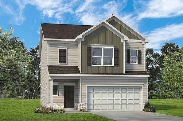 The Braselton II at Baker Creek Place by Smith Douglas Homes. Outdoor lovers prefer the Braselton II, by Smith Douglas Homes, for its unique rear corner covered porch, directly accessible from a large eat-in kitchen overlooking the family room. On the second floor, an over-sized loft separates the private owner's suite from two secondary bedrooms. Estimated completion date of 1/19/2024.