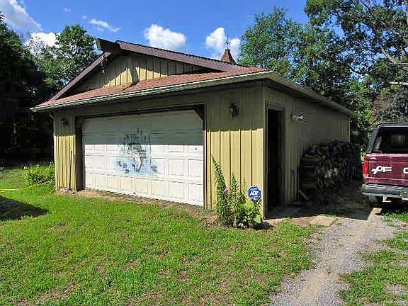 On TWO acres. Nice home with 2 bedrooms, Large living room with woodburner. Kitchen with all appliances and formal dining room. Roof, furnace & A/C 7 years young. 100 amp electric. Well pump 1 yr. old. Two car garage (pole barn) has dirt floor. Plus other outbuilding on property. Animal enclosures for Pheasants or chickens. Deep wooded lot, fruit trees, and frequent wildlife. Good water from well!