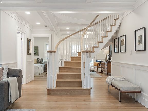 Experience the enduring charm of a 1927 Tudor in the heart of Laurelhurst, where history meets modern comfort. This 4-bedroom, 3-bathroom gem's exquisite craftsmanship beautifully blends original details like gleaming hardwood floors and arched windows with an awe-inspiring custom-built curved staircase, coffered ceilings, wainscot paneling, and contemporary upgrades for effortless living. Behind the grand facade lies a culinary haven. A chef's dream kitchen beckons with gas appliances, a dual-fuel oven/range, and sparkling KitchenAid Red Medallion stainless steel appliances. The spacious living room, bathed in natural light and warmed by an original tiled fireplace, effortlessly invites gatherings. Upstairs, find your refuge in the primary bedroom, a sanctuary of relaxation with a spa-like bathroom and a walk-in closet. Three additional bedrooms, each thoughtfully appointed with ample closet space, provide room for everyone. The finished basement transcends mere practicality. This multi-purpose space offers a dedicated home theater--imagine movie nights with immersive 7.2 surround sound and pre-wiring for dual subwoofers or a cozy media nook perfect for quiet escape. A high-speed network closet ensures seamless connectivity, while three powered laundry chutes and a central vacuum make chores a breeze. New high-efficiency mechanical systems, including upgraded electrical service, pex plumbing, metal ductwork, and a furnace/AC system, guarantee year-round comfort. Step outside to your private sanctuary, complete with a covered patio perfect for al fresco dining. A detached two-car garage and the convenience of color-temperature-selectable LED lighting throughout the entire home complete the picture. This isn't just a house; it's a blank canvas for your next chapter, a captivating blend of timeless charm and modern brilliance waiting to be yours. Seller-carried financing is an option! [Home Energy Score = 5. HES Report at https://rpt.greenbuildingregistry.com/hes/OR10224442]
