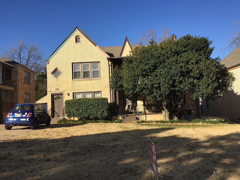 3 bed, 1.5 bath duplex (upstairs unit) available for lease. Has dining room and central heat and air. Unit is on the upper floor of a 1930s era historic duplex in desirable Crown Heights. Unit has new balcony. Kitchen has gas stove, garbage disposal and refrigerator. On-site washer dryer in shared utility room. Great location to get around city - across from park and close to Western Ave and Paseo District restaurants. Tenant pays all utilities except water/city. No smoking.