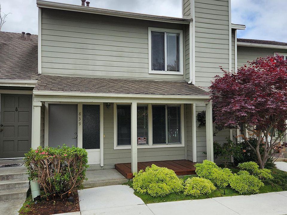 A charming 3Br, 2.5Ba two story home in the desirable neighborhood of Winston Village in Foster City. The home is 1340 sq. ft. and a great floor plan for couples or young families. Bright kitchen/dining room. Half bath down stairs (guests), baths for kids (tub) upstairs, en suite bath in primary bedroom upstairs. Small, private, fenced, gated backyard with room for a small vegetable garden. Laundry area in unit. Large, detached two car garage with a brand new (Bluetooth) garage door opener, ample storage helves, and a small work bench. This neighborhood is very kid friendly and is walking distance to both Foster City Elementary school as well as Beach Park Elementary school. The lagoon and Edgewater Shopping Center are also walkable from this home. Swimming pool and recreation room right across the walkway in front. Pool view from the primary bedroom. The living room, kitchen and dining area (entire ground floor) is off-white 18" ceramic tiles. The entire upstairs (bedrooms) are newly carpeted. The kitchen was recently remodeled/updated and all appliances (washer/dryer, refrigerator, range, dishwasher) in the home are brand new. The entire home has just been painted. The community of Foster City is only four square miles, but has 26 parks and 6 miles of the Bay Trail nearby which provides many miles of biking, running, and walking opportunities mostly along the S.F. Bay. Winston Village is a smoke-free community Dogs 25 lbs or less allowed. Renter to pay for water, sewer, gas, electricity Owner to pay for HOA fees Minimum 1 year lease