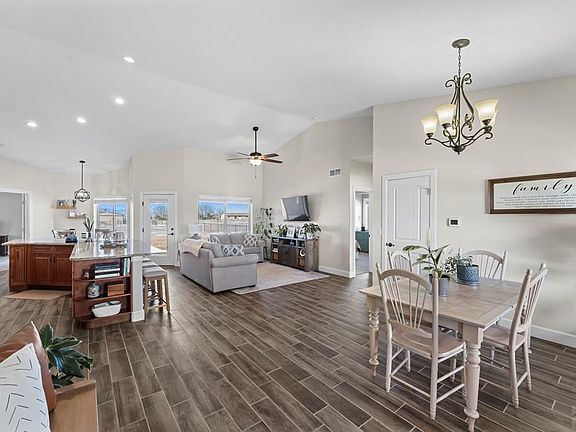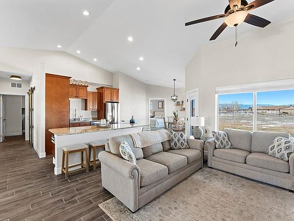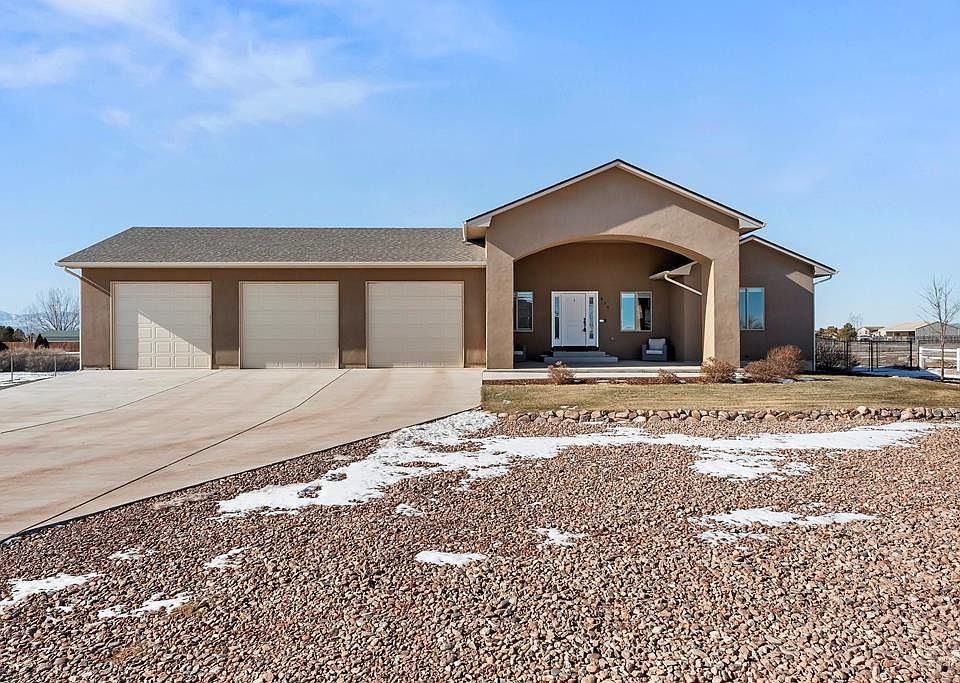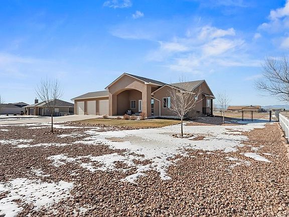 Immaculate custom home in Pueblo West with stunning mountain views! This homes is in pristine condition, featuring a lovely landscaped and fully fenced backyard for privacy and relaxation. Conveniently located near schools and beautiful Lake Pueblo. Inside, enjoy gorgeous wood-look tile floors, high vaulted ceilings, and 9ft ceilings throughout. The kitchen boasts upgraded custom cabinets, built-in appliances, an extra-long granite island, and a large pantry with a stylish barn door. The enormous master suite includes an oversized walk-in closet and a luxurious bath with a custom-tiled walk-in shower. The spacious main-level laundry room offers a wash sink and granite countertop. The unfinished basement with high ceilings is ready for additional bedrooms, a family room, or a wet bar. The oversized 1,000+ sqft garage is fully finished with 3 separate doors extra tall. A majestic covered front entry and covered rear patio provide breathtaking views. High-efficiency Trane furnace & AC, tankless water heater, synthetic stucco exterior, and 2X6 construction. Situated on a spacious 1-acre lot just off a paved road, this home is move-in ready!