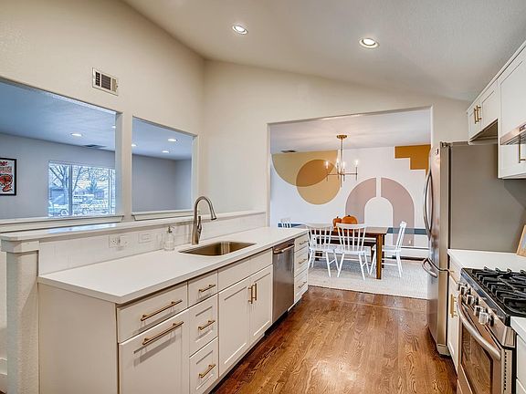 Stunning Modern Renovation in 2016! Natural light abounds the open floor plan with oversized windows, gleaming wood floors & vaulted ceilings. Gourmet kitchen boasts quartz counter tops, newer appliances, brushed bronze hardware & giant pantry. Fun formal dining room with custom mod mural leads to the enchanting sunroom that can also function as a home office or playroom. The rare master suite is sensational with his & hers closets. You'll love the private, ensuite bathroom featuring a luxurious walk-in shower. Plenty of room for guests and in-laws in the basement with a full bath & two conforming bedrooms w/egress windows, plus rec room and walk-in cedar closet. Newer front landscaping and designer patio welcomes you home. A perfect location to explore this thriving neighborhood. Just minutes to the Cherry Creek Trail, schools and Four Mile Parks. Just 4 blocks to Detour Bakery on Holly, great restaurants in Glendale and Cherry Creek. Easy commute to Downtown, DTC and Cherry Creek.