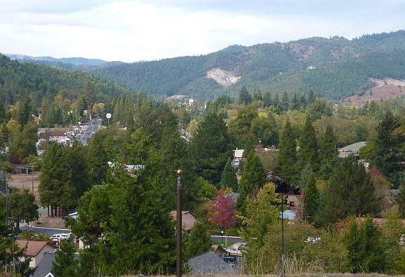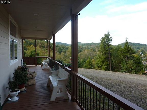 Wow! 5 acres in Canyonville, with views of the city and the surrounding mountains.8 year old 2100+ sf custom triple-wide, features 9' ceilings, crown molding trim, ceiling fans, lots of extra storage, spacious master suite, office with French doors and a covered front porch. Outside there's a 40'x 34'x 16H shop, great for hobbies or collector cars with lots of parking, paved drive. City services. Close to I-5& casino.