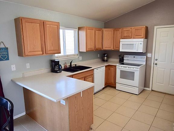 Well kept Pueblo West Rancher with all rooms on one level. Vaulted ceilings, large bay window, oak cabinetry throughout kitchen. Young appliances to include refrigerator, dishwasher, built-in microwave, electric range oven. Large kitchen pantry. Black kitchen sink with black Moen faucet. Bathrooms offer tile floors, granite counter and pedestal sink. Master bath offers over-sized stand up shower with seat, shampoo wall insert and ceiling rain shower head. Trex Deck from dining area overlooks the large backyard (there is an additional 5 feet beyond the rear fence leading up to the utility easement). Awesome Mountain Views from the backyard. There is section of backyard ideal for a garden and a large schlag driveway ideal for RV, trailer, boat, or car storage. There is a drive-able back access from the back fence. Crawl-space provides significant additional storage. Home is located near the Pueblo Reservoir. Come and fall in love with this lovely home.