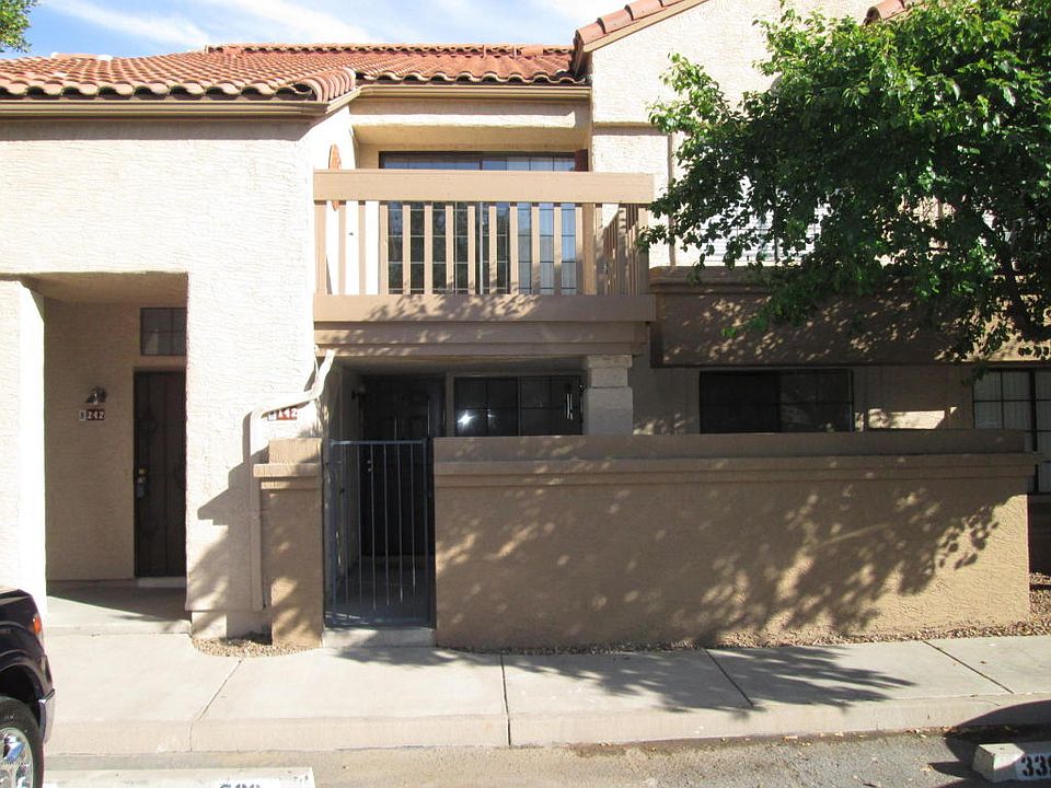 LARGE FRONT COVERED PATIO*SPLIT BEDROOM PLAN*ONE COVERED AND ONE UNCOVERED PARKING SPACES #339*CLOSE TO FREEWAY ACCESS, BANNER HOSPITAL, FIESTA MALL, MESA COMMUNITY COLLEGE AND MANY RESTAURANTS*GROUND LEVEL UNIT ALL ON ONE FLOOR*COMMON SWIMMING POOL*THIS IS INEXPENSIVE HOUSING AND A GREAT VALUE*INCLUDED IS THE WASHER,DRYER AND REFRIGERATOR*TAKE TIME TO SEE THE PHOTOS