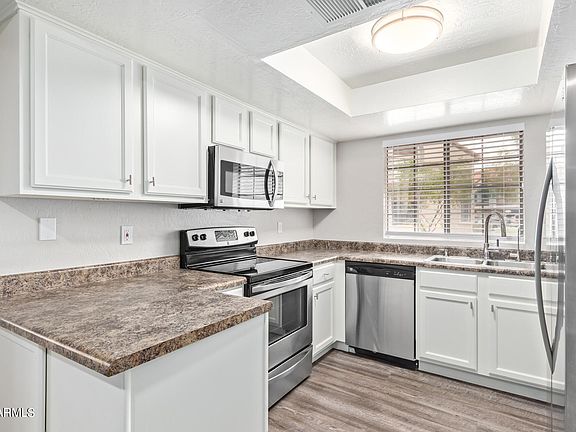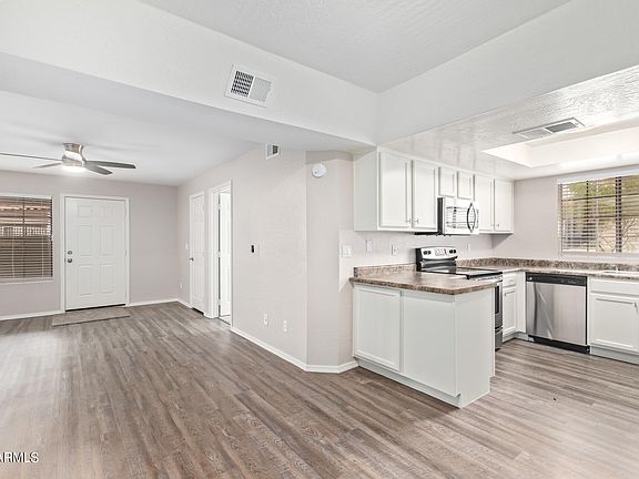 Located just steps away from one of the community pools, this downstairs unit offers a welcoming & functional floorplan with 2 bedrooms, 2 bathrooms & a private courtyard/patio. Recently updated with fresh paint, new carpet & new fans, fixtures + blinds throughout - this townhome is move-in ready & conveniently located close to MCC, shopping, dining & highways.