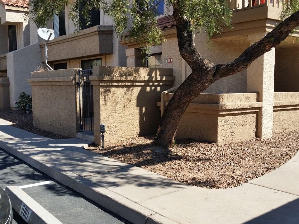 Completely remodeled lower end unit with block wall patio. All new paint, carpet, cabinets and counter tops redone. All new blinds on every window. Large tile flooring except in the bedroom. Stacked washer/dryer. Storage unit in patio area. Ceiling fans in all rooms. Come see today! This complex is close to MCC, ASU, Fiesta Mall, Restaurants and the 60 fwy.