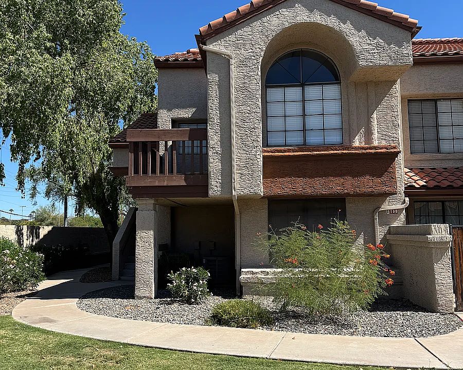 Two Story townhome end unit for great open feel and light, the vaulted, beamed ceiling in living room gives this already spacious two bedroom an extra large feel. Townhome in well maintained complex in a great location with convenient access to HWY 60, 101, 202 and the Metro Light Rail. Also close to shopping, restaurants, Mesa Community College, Banner Desert Hospital and much more! Generous storage with extra cabinets. Washer and dryer included. Close to Community Pool with an assigned parking space and lots of on street parking. Water, sewer, garbage, and all exterior maintenance is covered by association and included with the rent. Tenant pays monthly 2% Admin Fee, $75.95 RBP, $199 Move-In Fee, & $100 of security deposit is a non-refundable move-out inspection fee. All applicants must complete a pet application (see link on top of app.) Open bankruptcies, unpaid evictions, or rental judgements will not be accepted. Recent felonies (last 5 years) will be considered case-by-case basis. $25 pet rent per pet per month if applicable. Each applicant must also complete a Pet & Animal Policies screening process acknowledgement.