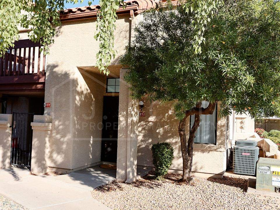Stylish, Spacious, and Convenient Make This Home Yours Today! 839 S Westwood - 272, Mesa, AZ, 85210 This light, bright, and charming 2 bed/2 bath condo, located in the desirable Fiesta Mesa District, is a true gem. With 1,055 square feet of living space, you are welcomed into the lower level where a stunning spiral staircase leads to the main living area featuring vaulted ceilings. The upper level boasts an open floor plan with a cozy private balcony perfect for enjoying the outdoors. The spacious kitchen is a standout, offering stainless steel appliances, ample cabinetry for storage, generous counter space for meal prep, and modern updates including new hardware and a sleek, contemporary faucet. Elegant wood flooring enhances the main living areas, while ceiling fans ensure year-round comfort. The updated bathrooms feature stylish new fixtures, including a relaxing soaking tub in the master bath and a convenient stand-alone shower in the guest bath. Step onto the private patio, which overlooks a lush greenbelt, offering a peaceful outdoor escape. For added convenience, a washer and dryer are included, making laundry effortless. Situated just minutes from top restaurants, vibrant shopping centers, entertainment venues, and cultural museums, this condo perfectly combines modern comfort and style with a prime location. Community amenities include a sparkling pool, providing the perfect spot to unwind and enjoy sunny days. Bedrooms . 1st bedroom is 11'x10' . 2nd bedroom is 13'x12', has a master bath Rooms and Interior . Open floor plan . High ceilings . Vaulted ceiling . Hardwood floors . Family room . Living room . Dining room . Ceiling fans . Master bath Kitchen and Bath . Hardwood floors . Electric stove/oven . Stainless steel appliances . Dishwasher . Refrigerator . Microwave . Garbage disposal . Pantry . Soaking tub Utilities and Extras . Electric furnace . Central air conditioning . Covered parking . Washer/dryer included . Cable ready . Internet access available . Not furnished Building and Surroundings . Deck . Swimming pool . Outdoor pool Lease Terms . Tenant pays all electric . One year lease . No smoking . 2 parking spots . No dogs . No cats . Trash removal included . Water/sewer included Contact Us: J. Scott Property Management Jason Adair No Smoking 12 Month Lease