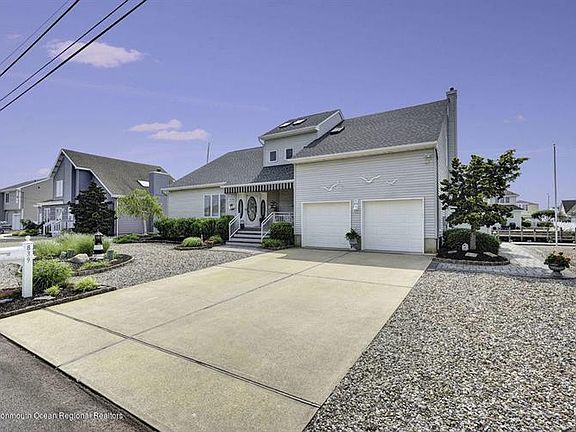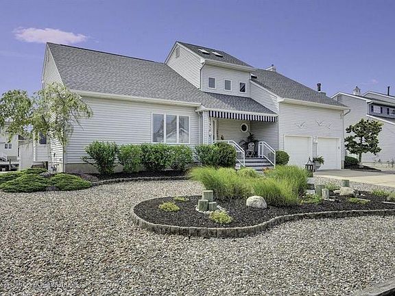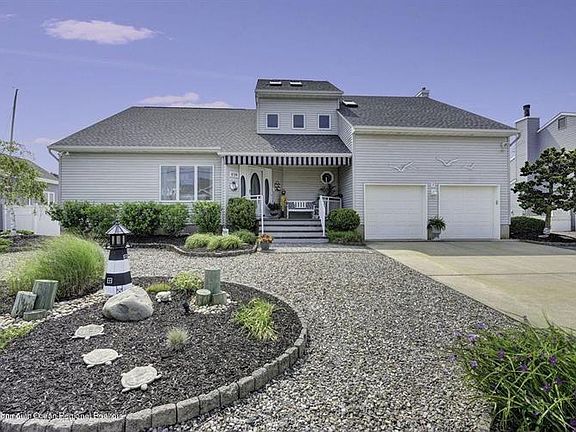 From the dock to the Barnegat Bay in under 5 minutes! You will feel right at home on the Jersey Shore upon entering this 2, 434 sq ft 4 bedroom 2.5 bath home located in Sunrise Beach! The home is situated on a 83x82 lot with 83' of vinyl bulkhead. The eat-in kitchen has hardwood floors, granite counter tops, a large center island with seating for 4, and gas fireplace. The laundry room has a 2nd refrigerator, cabinets and a sink. Natural lighting pours into the master bedroom which boasts hardwood floors, double walk-in closets, a Juliet balcony and full bathroom! The master bathroom has double sinks and a spacious 6'x6' tiled shower. Two sets of sliding doors lead out onto the 60'x'15' deck that overlooks the 83' composite dock with water and electric! Additional features include brand new