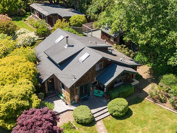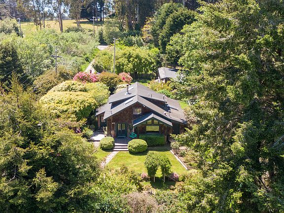 Enchanting English gardens by the sea. Two homes on just under an acre on Stagecoach Rd in Trinidad. Downstairs the 3 bedroom, 2 bath, approx 1876 sq ft main home features arched doorways, wood floors, abundant windows to take in the garden views, uniquely styled kitchen, spacious living room with wood stove, guest bath with clawfoot tub, & one bedroom with attached office space. Upstairs houses 2 more bedrooms and another bath. The approx 648 sq ft 2nd unit features wood floors, wall of windows and open living concept. Both have separately fenced yards and decks. Delight in the lushly planted and manicured gardens! Detached wood shop, greenhouse, raised garden beds and a multitude of outbuildings for all your storage needs. Located on a dead end street close to beaches, trails and town!