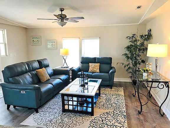This adorable 2-bedroom, 2 bathroom home is a MUST SEE! Home has been remodeled inside and out. New stucco exterior, all new windows and sliders throughout. Brand new A/C, water heater, washer and dryer. Beautiful planked vinyl flooring, granite kitchen with all new appliances. Sit out and enjoy the beautiful Florida weather in the front screened lanai. Located on an interior lot with a low lot fee. So many upgrades, cannot list them all! Home comes furnished.