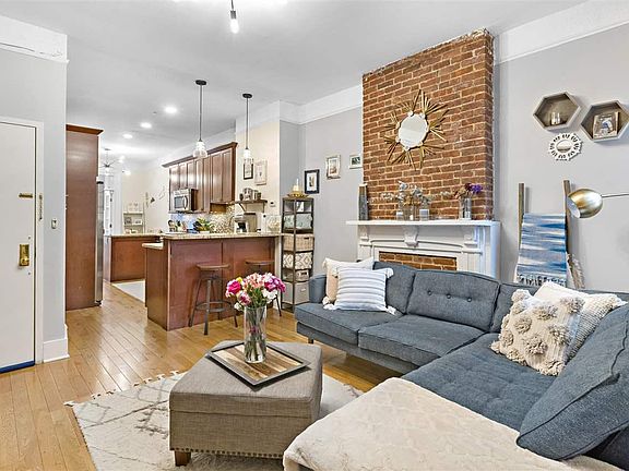 Residence 5 at 839 Willow Avenue is a thoughtfully renovated and modernized 785 SF two bedroom, one bathroom home that is remarkable for its open-concept living, dining, and entertaining area, all in a coveted location. Open chef's kitchen featuring shaker cabinetry, a full size pantry, stainless steel appliances, and recessed lighting. The two bedrooms are located at opposite ends of the home, with primary bedroom featuring custom built-ins for maximum organization. Features hardwood floors, original exposed brick, molding, and fireplace mantle. Enjoy the convenience of in unit, full size washer/dryer, huge, private caged storage and a beautifully maintained shared yard. It is perfectly positioned in the center of Hoboken and offers incredible access to neighboring Columbus Square Park, Washington Street, and the Hudson River Waterfront Walkway. NJ Transit express buses that service both New York City's Port Authority and Hoboken Terminal (PATH, NY Waterway Ferry, Light Rail, NJ Transit) right outside the door. Close to CVS, Shoprite, Trader Joe's, playgrounds, splash pads, basketball/tennis courts, and easily accessible to the best shopping, restaurants, schools, daycare facilities, coffee shops and entertainment. Home features custom closets, brand new light fixtures and recessed lighting, recently replaced hot water heater, custom built-in entertainment shelving, brand new blinds in primary bedroom, and a brand new electrical panel.
