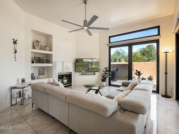 Are you looking for sparkle and shine? Come see this HIGHLY UPGRADED and FRESHLY REMODELED home in upscale, desirable Los Abrigados. Gorgeous curb appeal, shows light and bright, with soaring ceilings and tons of natural light without the heat. Over $265,000 in recent upgrades include - ALL NEW Anderson High Performance Smart Sun glass windows and doors. In the middle of summer the windows are cool to the touch inside. Electric shades inside and outside, NEW high quality kitchen cabinets, creamy quartz countertops and backsplash, shiny new stainless appliances, new spotless porcelain flooring (no carpet!), newer heat pumps, roof replacement and roof coating. Upgraded, new light and plumbing fixtures. EV charging station in garage, Full house water filtration system....every faucet has drinkable, filtered water. Low maintenance landscaping, close to everything wonderful about Scottsdale. Beautiful community pool area with fresh facelift, jade green grass and trees, and the peace and security of a gated community. Furniture is available on separate bill of sale - all negotiable.