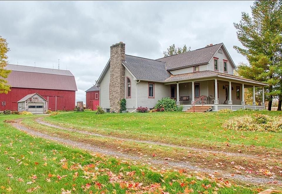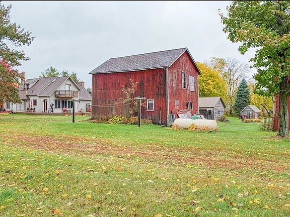 Charming Farmhouse Retreat—5 Acres of Country Living! Discover the perfect blend of tranquility and convenience with this stunning approximately 5-acre property, featuring a beautiful farmhouse, spacious barns, and breathtaking views. Nestled among mature trees and flourishing grapevines, this home offers a warm and inviting atmosphere with wood floors and solid doors throughout. The open kitchen and breakfast space provide panoramic views of the picturesque yard, making every morning feel like a retreat. The living room boasts a vaulted ceiling and a cozy fireplace, creating the ideal space for relaxation. A first-floor laundry adds to the convenience, while the usable basement offers extra space for storage, hobbies, or entertainment. Experience the best of country living while staying close to town—a rare opportunity to enjoy peace and privacy without sacrificing accessibility. One-of-a-kind country home is everything you’ve been searching for! Tenant occupied property All offers on this property are sight on seen.