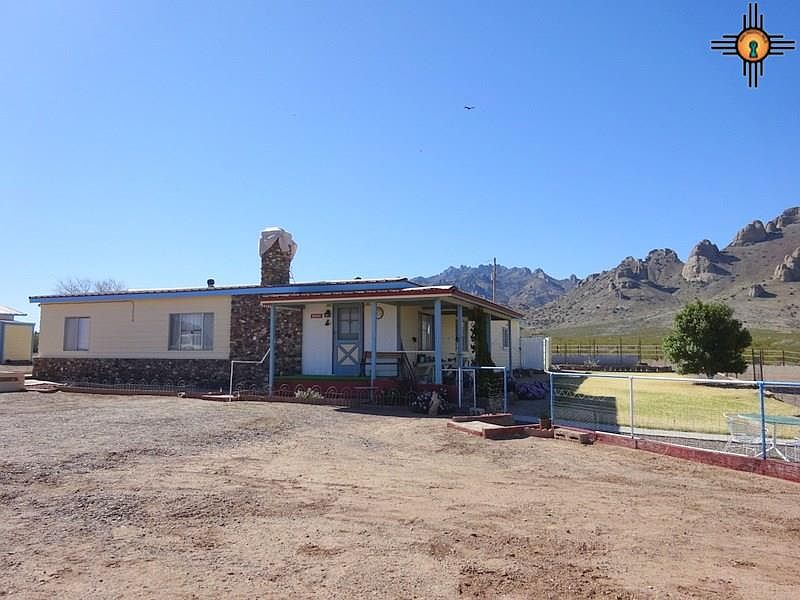 Cowboys welcome to this 2132 sq.ft. ranch in the Florida Mountains with sweeping views to City of Deming. 3 bedrooms, 2 baths, Eat-in Country Kitchen, Rock Fireplace in living room. Large back bedroom could easily be family room, Sunroom off this bedroom. Detached small garage/workshop. storage bldgs, rock formations, spectacular mountain views and 12 minutes to Downtown Deming for shopping, schools and easy access to Interstae 10 to Las Cruces, Lordsburg, and El Paso airport. Silver City also within an hours drive. Easy lifestyle and true Country living.