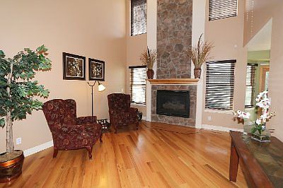 Immaculate Home with updates throughout! Cathedral Ceilings, Beautiful wood flooring, floor to ceiling stone fireplace w/mantel upon entrance, Large Kitchen w/great counter space - all granite & extended backsplash, s/s appliances, 42" Hickory Cabinets-rollouts & soft close w/dimming under-mount lighting. Newer Windows and blinds. 4' baseboards throughout that add nice rich feel. Open fully finished basement w/bath and surround sound, direct TV pre-wired. Large Master w/completely updated 5 piece, private water closet and huge walk-in closet! Main floor study-French doors. Extended Back Patio with gas hookup for great family BBQ's. Updated fixtures and hardware, Newer exterior and interior paint. Also the garage cabinets will leave you in Ahh!!