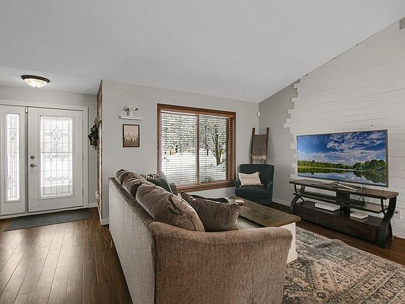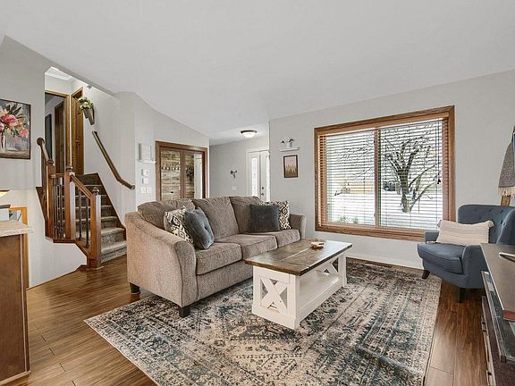 Beautiful home in a high demand Lakeville area, very close to 35W. Vaulted LR, Kitchen w/center island, newer high quality SS appliances, granite countertops, touchless faucet and glass washer, and an enormous refrigerator! Upgraded bathroom off master, boasts a curved shower with multiple jets and a huge soaker tub as well as an LED bath mirror with adjustable brightness and color plus it is anti fog. Hardwood floors. Large walkout family room w/gas FP. Kitchen walks out to 20x14 deck which walks down to a 16x12 patio to a fenced yard. Ring security system. Shed out back, MYQ smart garage and so much more. Fabulous location near Steve Michaud bike path and in Lakeville schools!