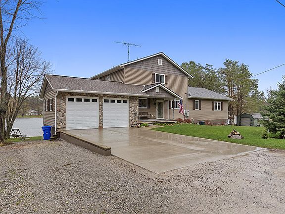 Step into luxury living with this stunning waterfront home nestled on 2.5 acres of serene, private land along the tranquil shores of Lake Lure. Boasting 300 feet of waterfrontage, this property offers a lifetime of unforgettable fishing experiences on the 55-acre lake, renowned for its diverse aquatic life including Pike, Bass, Blue Gill, Perch, and Crappies, making it a haven for fishing enthusiasts year-round, even featuring ice fishing in the winter months. The custom-built home, immaculately maintained by its original owners, showcases meticulous attention to detail with three bedrooms and the potential for a fourth on the main floor, ideal for a home office bathed in natural light. Enjoy breathtaking sunsets from the main level master ensuite, complemented by a stunning California-style fireplace and dual living spaces. The basement presents endless opportunities for customization, with ample storage and a half bathroom already in place. Outside, a sprawling 56x40-foot pole barn with a 15-foot overhang and 220 outlets awaits, perfect for any hobbyist or storage needs. Delight in the enclosed native garden, attracting local wildlife such as deer, eagles, and ducks, while the charming "she shed" offers a retreat for gardening enthusiasts. For outdoor adventurers, the nearby Pere Marquette Trail and motorcycle/dirt bike trails provide endless exploration opportunities. Don't miss out on this unparalleled chance to own a slice of paradise!