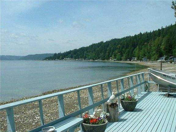 MOVE IN READY, furnished 1 bed with loft for sleeping up to 9 people, 150' of waterfront on 2 lots. Parking for 4 cars 1 car garage with shop area . Large deck with sun-setter shade (electric). Concrete steps to water. Oysters/clams and tons of crab.Newer infrared septic monitored yearly.