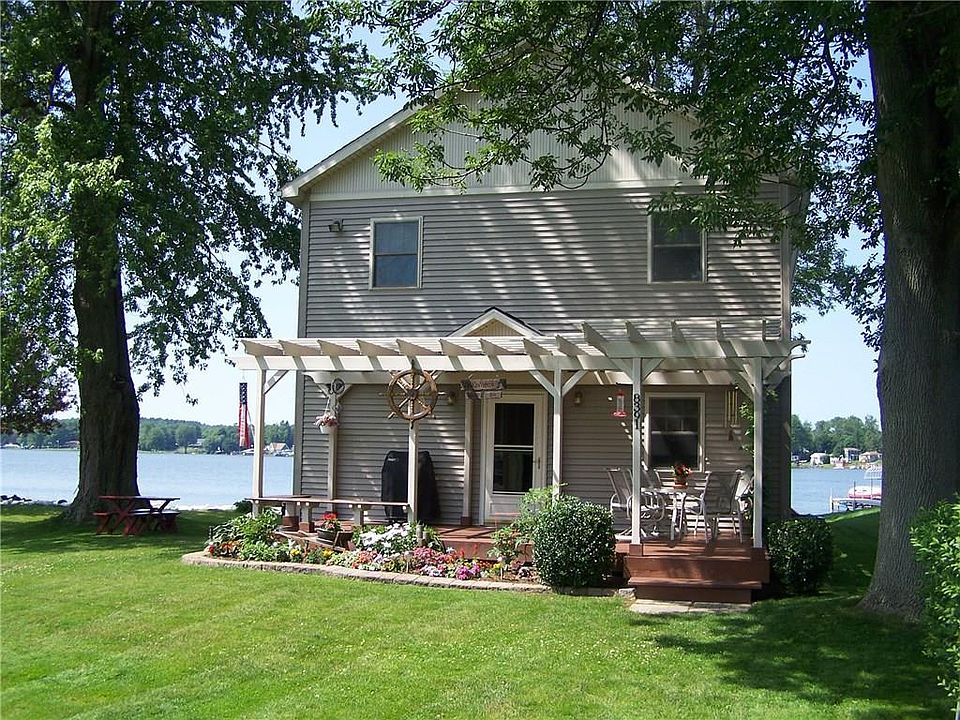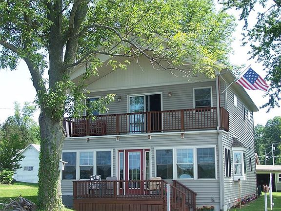 MINT condition 3+ bed, 2 bath Colonial home CUSTOM BUILT in 2005! This property has been in the family since 1924. The former cottage was removed and this amazing YEAR AROUND HOME was built on 50' of PRIME LEVEL WATERFRONT. Aluminum Dock & Shore Station hoist included. Home offers wonderful floor plan, spacious rooms, Hickory Kitchen w/ island, all appliances included, central air, large master bedroom with sliding glass door to balcony deck, enclosed 4 season porch, & garages. Enjoy coffee with the rising sun in the morning on the east deck and then a glass of wine overlooking the water for the evening sunset in the west. Port Bay has channel access to Lake Ontario and offers some of the best fishing, boating & recreational fun!