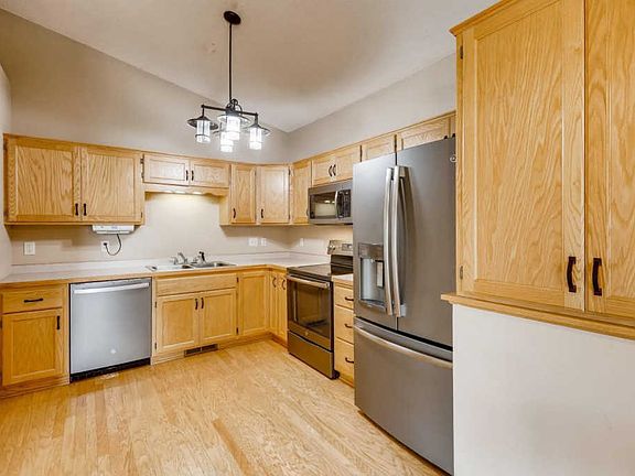 TRULY TURN-KEY!! Great starter END UNIT townhome NOW AVAILABLE! The vaulted ceilings give upper level an open, airy feel! Also noteworthy are the updated light fixtures, lots of daylight and large linen storage in the main bath upstairs! The kitchen features newer stainless appliances & ample storage for all your kitchen essentials! Enjoy a cup of coffee on the maintenance-free deck just off of the living room. The master with a spacious walk-in closet is a plus! Enjoy more living space in the beautifully finished walk-out lower level complete with family room, an additional bedroom, full bath and access to patio. Cozy up by the stone surround gas fireplace on a cool evening while watching your favorite movie! Conveniently located within walking distance of parks, schools, shopping and more! Your commute to work just got easier with easy access to major highways! Enjoy maintenance free living less than rent! Start Packing & Welcome Home!